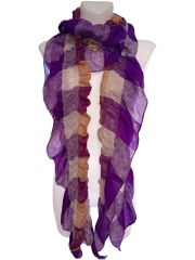 Lila színű, meleg, fodros kocka mintás sál, vékony puha anyagból.