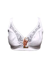 Fehér színű, merevítős, szivacs nélküli pamut melltartó csipkével díszítve. Hátul két soros, három kapcsos.
