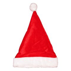 Bojtos, piros-fehér színű vékony anyagú mikulássapka.