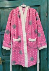 Mintás, pihe-puha, plüss wellsoft köntös, kapucnival és zsebekkel, hozzá övvel, belső megkötőkkel.