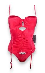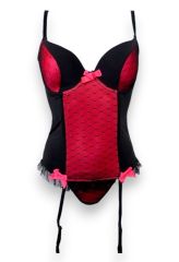 B, C kosaras formázott, merevítős melltartó, harisnyatartóval, tangával.