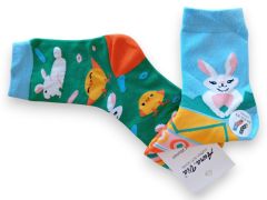 Boka fölé érő, orrvarrás nélküli pamut zokni, más és más bohókás cicás és egér mintázattal, mégis egy párt alkotnak.